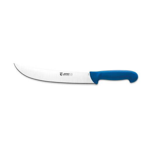 Το μαχαίρι σφαγής καμπύλη μπλε 26cm είναι ένα εξαιρετικό εργαλείο για επαγγελματίες κρεοπώλες και λάτρεις της μαγειρικής που απαιτούν ακρίβεια και αποτελεσματικότητα. Με λεπίδα 26 εκατοστών, αυτό το μαχαίρι προσφέρει την ιδανική ισορροπία μεταξύ μήκους και ευελιξίας, επιτρέποντας άνετη και ελεγχόμενη κοπή. Η καμπύλη λεπίδα διευκολύνει την εκτέλεση ακριβών τομών, ιδανική για σφαγή και επεξεργασία κρέατος. Το μπλε χρώμα της λαβής δεν είναι μόνο αισθητικά ευχάριστο, αλλά και λειτουργικό, καθώς βοηθά στην αναγνώριση και την αποφυγή διασταυρούμενης μόλυνσης. Κατασκευασμένο από υψηλής ποιότητας ανοξείδωτο ατσάλι, το μαχαίρι εξασφαλίζει αντοχή και μακροχρόνια χρήση, ενώ η εργονομική λαβή παρέχει άνετο και ασφαλές κράτημα. Ιδανικό για χρήση σε επαγγελματικές κουζίνες αλλά και στο σπίτι, αυτό το μαχαίρι είναι απαραίτητο εργαλείο για όποιον επιδιώκει την τελειότητα στην κοπή κρέατος.
