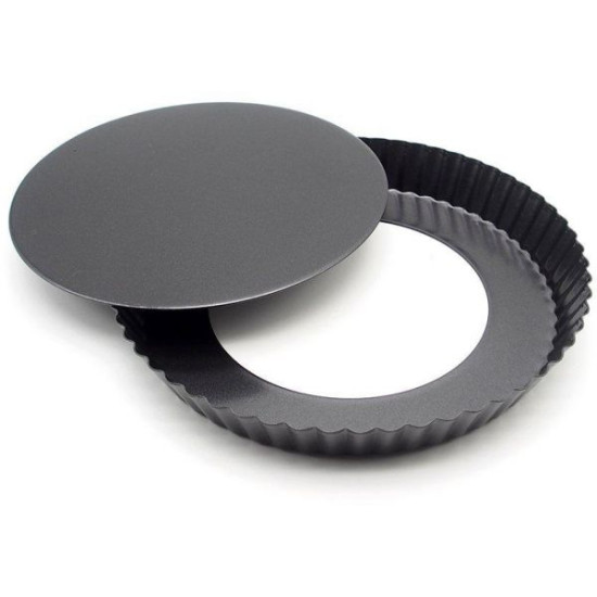 Η Φόρμα Τάρτας Αντικολλητική Αποσπώμενη 26cm είναι το απόλυτο εργαλείο για κάθε λάτρη της ζαχαροπλαστικής και της μαγειρικής. Κατασκευασμένη από υψηλής ποιότητας υλικά, εξασφαλίζει ομοιόμορφη κατανομή θερμότητας για τέλειο ψήσιμο κάθε φορά. Η αντικολλητική της επίστρωση επιτρέπει την εύκολη αφαίρεση των γλυκών και αλμυρών δημιουργιών σας, χωρίς κολλήματα και φθορές. Το αποσπώμενο σχέδιο της βάσης διευκολύνει το σερβίρισμα, καθιστώντας τη φόρμα ιδανική για παρασκευές όπως τάρτες, κις, πίτες και πολλά άλλα. Επιπλέον, η διάμετρος των 26cm προσφέρει επαρκή χώρο για μεγάλες μερίδες, ικανοποιώντας τις ανάγκες κάθε οικογένειας ή συγκέντρωσης. Εύκολη στον καθαρισμό, αποτελεί απαραίτητο προσθήκη στην κουζίνα σας, συνδυάζοντας λειτουργικότητα και ανθεκτικότητα.