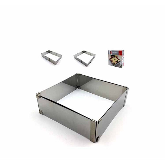 Η φόρμα-τσέρκι ΙΝΟΧ Τετράγωνη Πτυσσόμενη 16×6-30x30x5 αποτελεί ένα απαραίτητο εργαλείο για κάθε επαγγελματία ή ερασιτέχνη ζαχαροπλάστη. Κατασκευασμένη από ανοξείδωτο ατσάλι υψηλής ποιότητας, εξασφαλίζει αντοχή στη φθορά και μακροχρόνια χρήση, χωρίς να αλλοιώνεται η γεύση των γλυκών ή των φαγητών. Η πτυσσόμενη σχεδίασή της επιτρέπει την εύκολη προσαρμογή του μεγέθους από 16×6 εκατοστά έως 30×30 εκατοστά, καθιστώντας την ιδανική για την παρασκευή ποικιλίας γλυκισμάτων και αρτοσκευασμάτων, όπως κέικ, τούρτες και πίτες. Το ύψος των 5 εκατοστών προσφέρει επαρκή βάθος για πολυεπίπεδες δημιουργίες. Η φόρμα-τσέρκι είναι εύκολη στον καθαρισμό και κατάλληλη για χρήση στον φούρνο, προσφέροντας ομοιόμορφο ψήσιμο και τέλεια αποτελέσματα κάθε φορά. Με τη χρήση της, οι δημιουργίες σας θα αποκτήσουν επαγγελματική εμφάνιση και υφή, εντυπωσιάζοντας τους καλεσμένους σας.