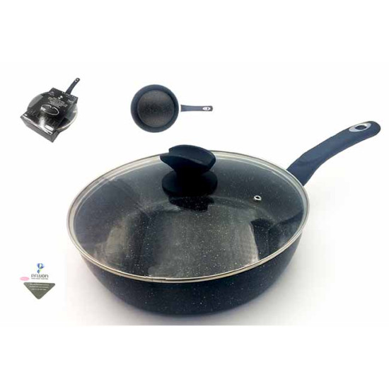 Η σωτέζα αντικολλητική με επίστρωση πέτρας και καπάκι, διαστάσεων 28×8 εκατοστά, αποτελεί μια εξαιρετική επιλογή για κάθε σύγχρονη κουζίνα. Κατασκευασμένη από υλικά υψηλής ποιότητας, προσφέρει εξαιρετική αντοχή και μακροχρόνια χρήση. Η ειδική αντικολλητική επίστρωση από πέτρα εξασφαλίζει ομοιόμορφη κατανομή της θερμότητας, επιτρέποντας το μαγείρεμα με λιγότερο λάδι ή λίπος, διατηρώντας ταυτόχρονα τις φυσικές γεύσεις και τα θρεπτικά συστατικά των τροφίμων. Το καπάκι της συμβάλλει στη διατήρηση της υγρασίας και της θερμοκρασίας, καθιστώντας την ιδανική για μαγειρευτά φαγητά, σοταρίσματα και τσιγαρίσματα. Επιπλέον, το εργονομικό της χερούλι προσφέρει ασφαλές και άνετο κράτημα. Η σωτέζα αυτή είναι εύκολη στον καθαρισμό και κατάλληλη για όλες τις εστίες μαγειρέματος, προσφέροντας ευελιξία και ευκολία στην καθημερινή σας μαγειρική εμπειρία.