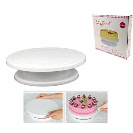Η περιστρεφόμενη βάση τούρτας 28cm είναι ένα απαραίτητο εργαλείο για κάθε ζαχαροπλαστείο ή οικιακό μάγειρα που θέλει να επιτύχει τέλεια αποτελέσματα στη διακόσμηση των γλυκών. Κατασκευασμένη από ανθεκτικά υλικά, προσφέρει σταθερότητα και αντοχή στη χρήση, ενώ ο ομαλός μηχανισμός περιστροφής της επιτρέπει την εύκολη πρόσβαση σε όλες τις πλευρές της τούρτας. Αυτό το εργαλείο είναι ιδανικό για την εφαρμογή γλάσου, δημιουργία περίτεχνων σχεδίων και λεπτομερούς διακόσμησης, επιτρέποντας την ακριβή και ομοιόμορφη τοποθέτηση διακοσμητικών στοιχείων. Είτε ετοιμάζετε μια απλή τούρτα για την οικογένεια είτε ένα εντυπωσιακό γλυκό για ειδικές περιστάσεις, η περιστρεφόμενη βάση είναι ο σύμμαχός σας για επαγγελματικά αποτελέσματα. Επιπλέον, το συμπαγές της μέγεθος την καθιστά εύκολη στην αποθήκευση και τη μεταφορά, ενισχύοντας την πρακτικότητα στη χρήση της.